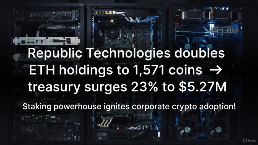 Republic Technologies just slammed the gas on its Ethereum bet, doubling ETH holdings to 1,570.60 coins and igniting a 23%…