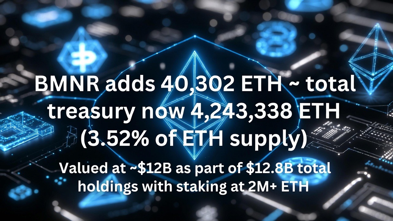 BMNR Now Holds 4,243,338 ETH (3.52% of ETH Supply) – Valued at ~$12 Billion!