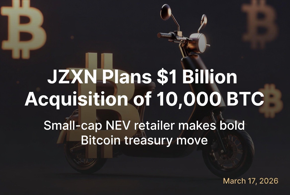 Based in Hangzhou, China, Jiuzi franchises and runs retail operations selling new energy vehicles (mainly two- and three-wheelers, plus batteries and charging gear) in lower-tier cities. The company has been building its crypto angle quietly since 2025 through partnerships and appointments—this proposed BTC haul marks a major evolution while the core NEV business keeps rolling.