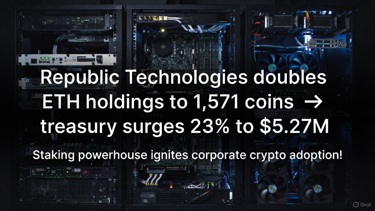 Republic Technologies just slammed the gas on its Ethereum bet, doubling ETH holdings to 1,570.60 coins and igniting a 23% blaze in its crypto treasury to $5.27 million as of December 10 close.